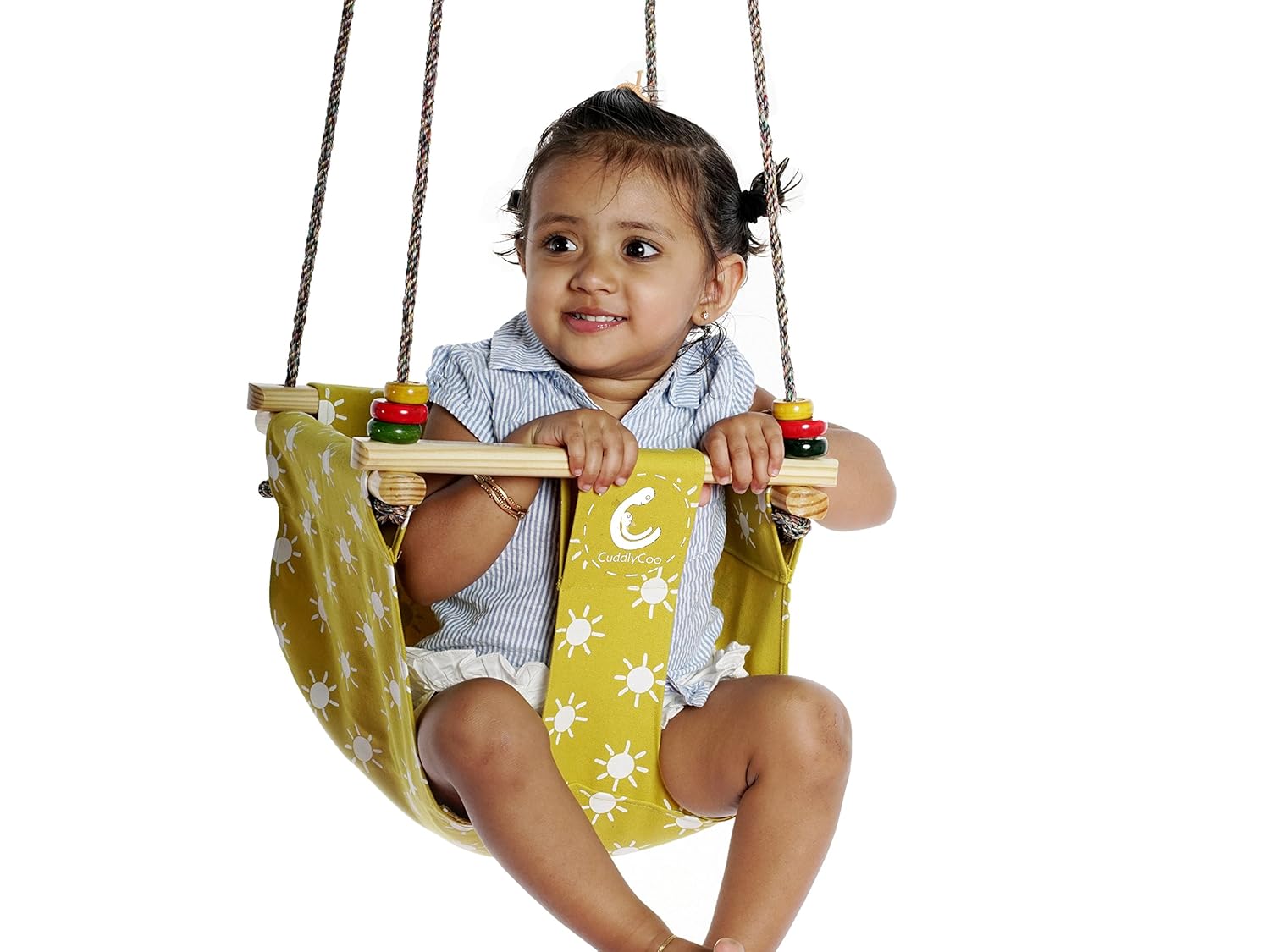 Cuddlycoo Cotton Bucket Cushioned Toddler Swing Or Jhula For Baby With Play Rings And Mustard Sun Amazon In Baby Products